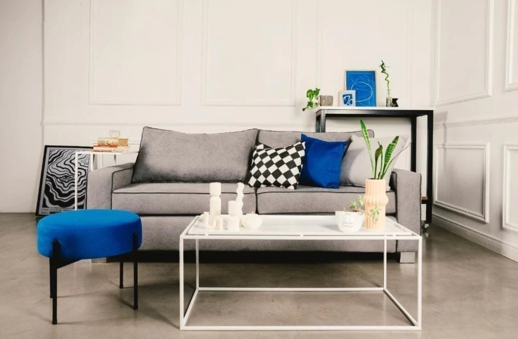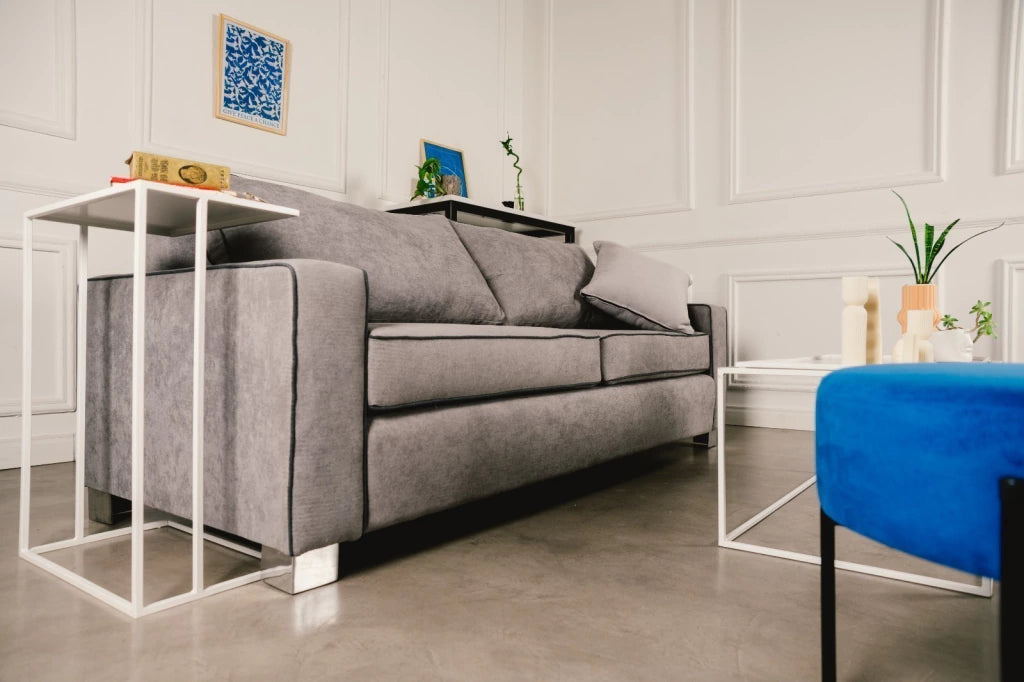 Es un sofá de 3 cuerpos, con 3 almohadones de asiento de placa de goma espuma de alta densidad y 3 almohadones de respaldo rellenos de vellón siliconado. Tiene un esquinero con dos posiciones, derecho o izquierdo, a elección y patas bajas de goma invisibles antideslizantes o patas altas de madera. Tapizado con tela chenille de pelo corto anti desgarro o pana anti manchas. Consultar por la opción patas metálicas.