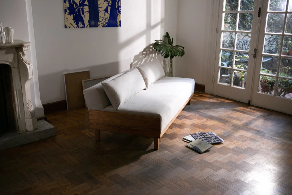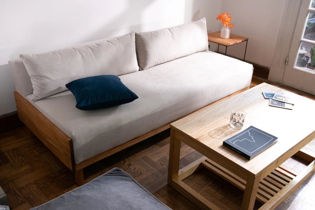 Sofá cama de diseño único y practico con estructura de madera, que logra 3 posiciones siendo funcional a cualquier espacio donde lo quieras ubicar.