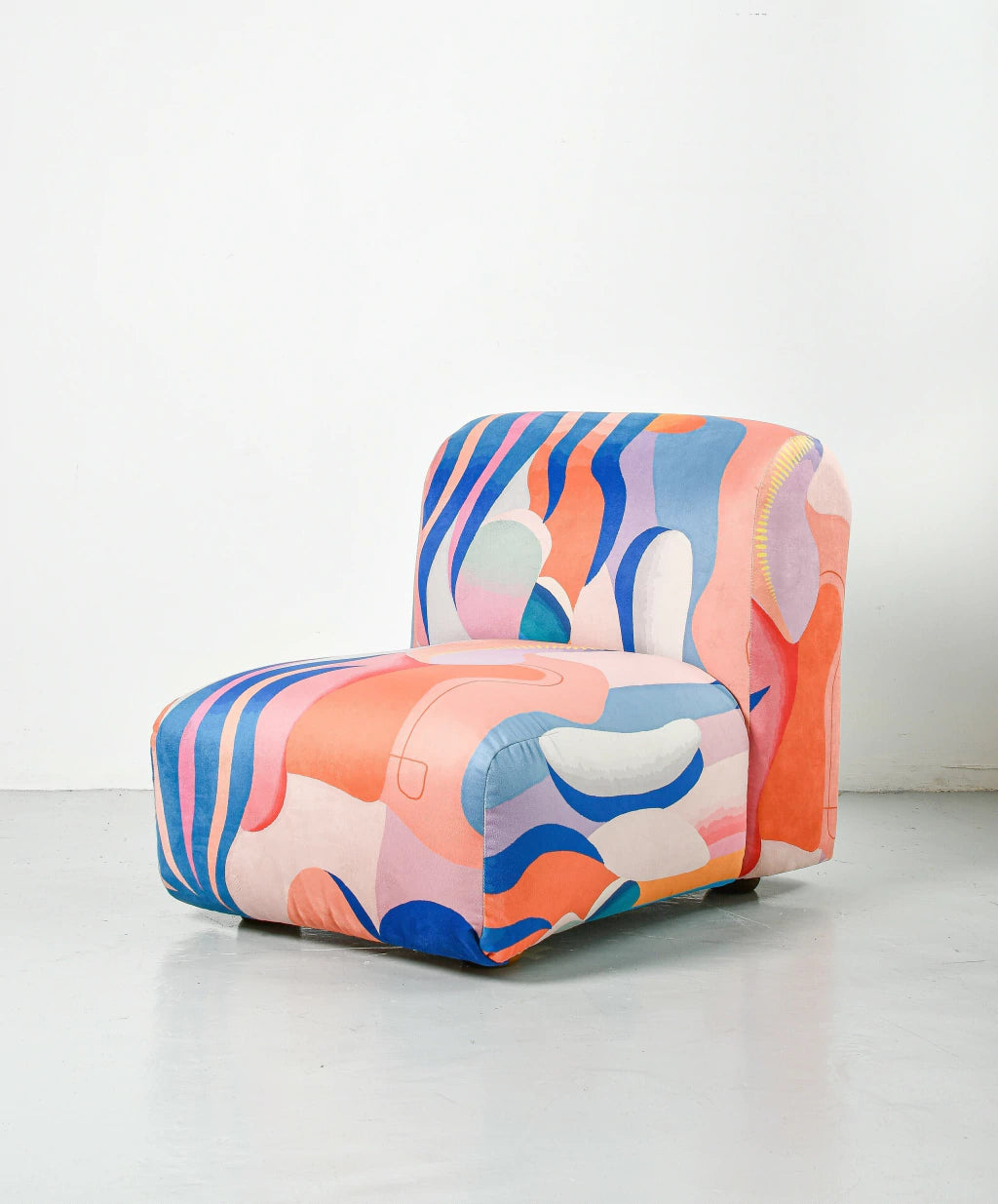Es un sillón de 1 cuerpo modular, con un almohadón de asiento de placa de goma espuma de alta densidad integrado y un almohadón de respaldo integrado. Tiene patas bajas de goma antideslizantes invisibles. Tapizado con tela panas anti manchas. Consultar la opción de chenille de pelo corto anti desgarro o ecocuero.